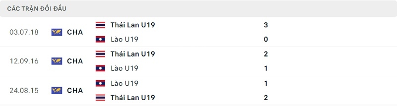 Thành tích đối đầu U19 Lào vs U19 Thái Lan: