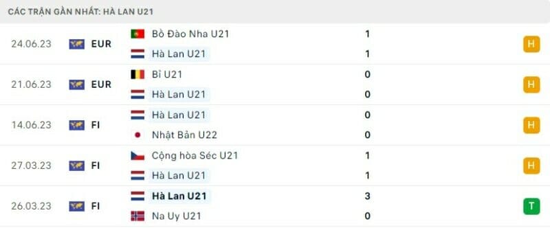 U21 Hà Lan đã không thể giành được chiến thắng nào trong hai trận đấu đầu tiên của họ, với 2 trận hòa trước U21 Bỉ (0-0) và U21 Bồ Đào Nha (1-1). Rõ ràng, đội bóng xứ sở cối xay gió đã thiếu đi sự hiệu quả trong khâu dứt điểm khi tung ra tổng cộng 23 cú sút nhưng chỉ có 1 bàn thắng. Với chỉ 2 điểm có được, U21 Hà Lan hiện đang tạm xếp thứ 3 ở bảng A, để chắc chắn đi tiếp họ buộc phải đánh bại U21 Georgia ở trận đấu tới.