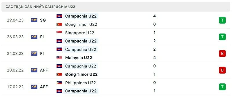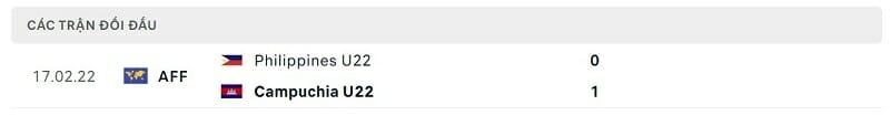 Thành tích đối đầu U22 Philippines vs U22 Campuchia: