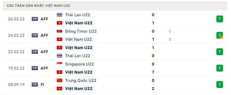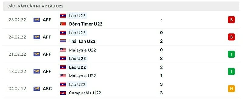 Phong độ gần đây U22 Việt Nam vs U22 Lào: