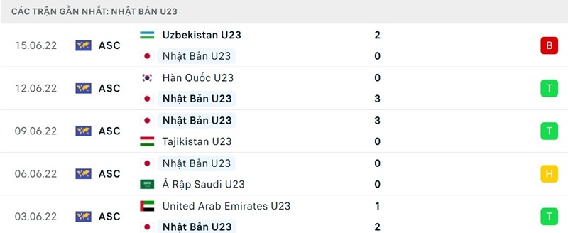 Phong độ gần đây U23 Nhật Bản vs U23 Úc: