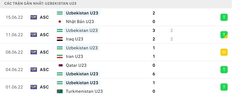 Phong độ gần đây U23 Uzbekistan vs U23 Ả Rập Xê Út: