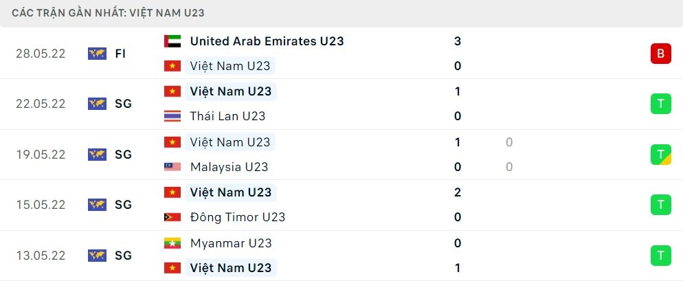 Phong độ U23 Việt Nam vs U23 Thái Lan