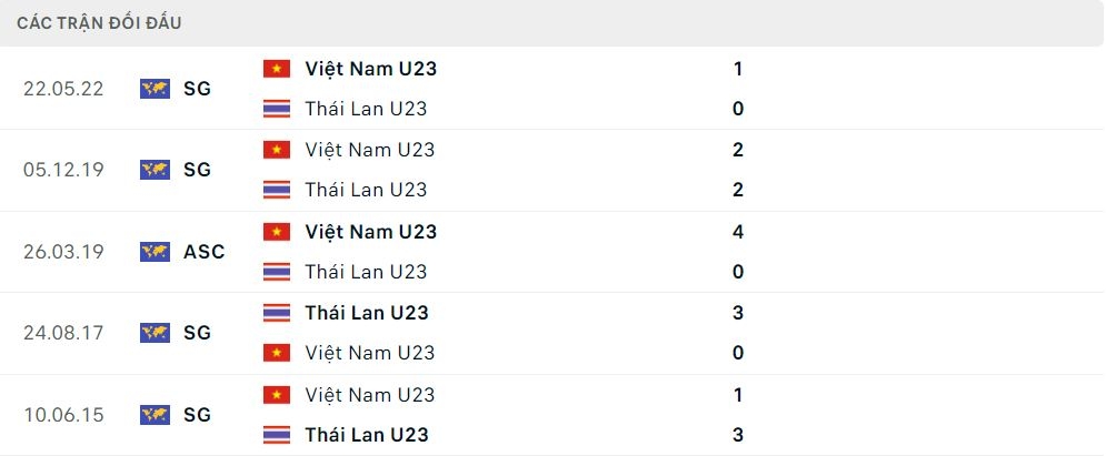 Thành tích đối đầu U23 Việt Nam vs U23 Thái Lan