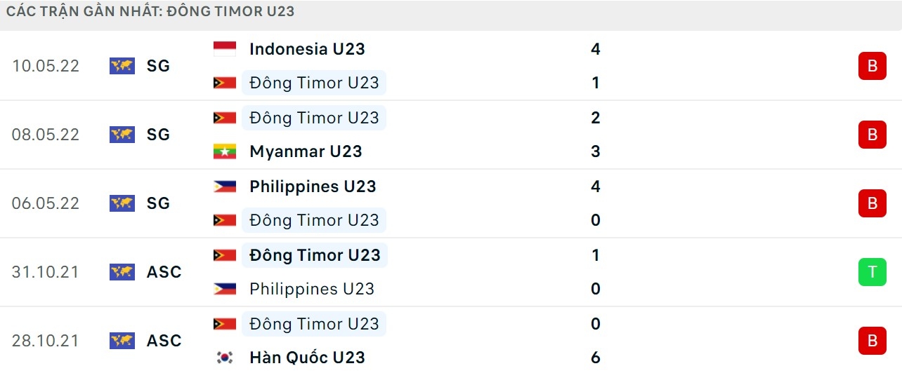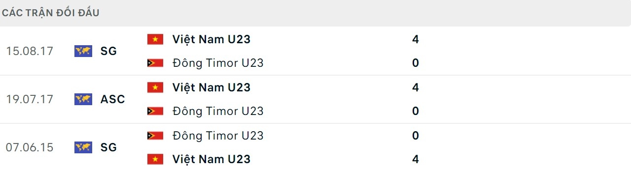 Thành tích đối đầu U23 Việt Nam vs U23 Timor Leste: