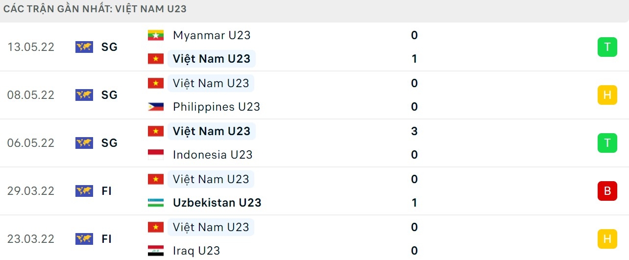Phong độ gần đây U23 Việt Nam vs U23 Timor Leste: