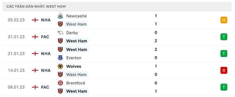 Sau nửa đầu mùa giải thi đấu vô cùng thất thường và phải chật vật ở nhóm xuống hạng, West Ham đang dần tìm lại được sự ổn định với chuỗi thành tích khá tốt. Trong 5 trận gần nhất tính trên mọi đấu trường, đoàn quân của HLV David Moyes chỉ để thua duy nhất 1 trận trước Wolves, còn lại là 3 trận thắng và 1 trận hòa.