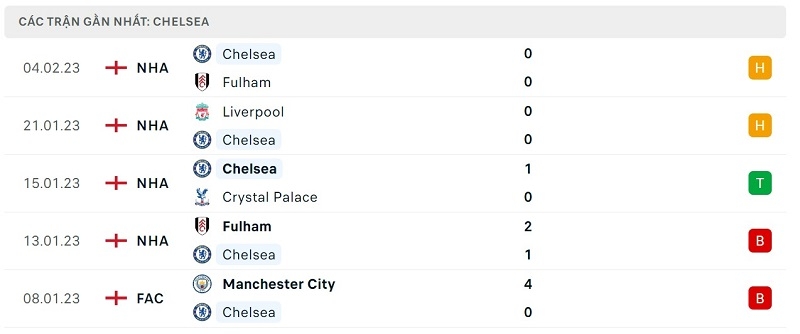 Tính trên mọi đấu trường, thành tích của Chelsea trong 5 trận gần nhất cũng không hề tốt. Đoàn quân của HLV Graham Potter mới chỉ có duy nhất 1 chiến thắng, còn lại là 2 trận hòa và 2 thất bại. Ở trận đấu gần nhất trước Fulham, Chelsea dù rất nỗ lực nhưng không thể ghi bàn và phải chấp nhận kết quả hòa trước đối thủ cùng thành phố.