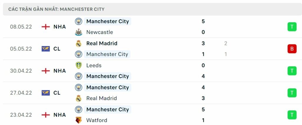 Trong khi đó, ngay sau thất bại tủi nhục trước Real Madrid tại Cúp C1, Man City đã ngay lập tức hủy diệt Newcastle 5 bàn không gỡ để bỏ lại Liverpool 3 điểm trên BXH. Thầy trò Pep chỉ còn cách danh hiệu vô địch Premier League 3 trận đấu nữa và chắc chắn họ không muốn sảy chân bất cứ lần nào. Phong độ của The Cityzens tại giải đấu quốc nội là rất ổn định khi bất bại 9 vòng gần nhất (thắng 7), ghi được 26 bàn thắng và chỉ để lọt lưới 4 bàn. Gặp một Wolves không còn nhiều động lực là cơ hội giúp Man City tiến gần thêm đến việc bảo vệ ngôi vương.