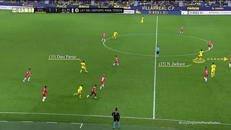 Jackson bùng nổ ở phần cuối mùa vừa rồi, khi anh được giao trọng trách thi đấu cao nhất trên hàng công Villarreal. Trong sơ đồ 4-3-3 hoặc 4-2-3-1, cầu thủ sinh năm 2001 sẵn sàng bứt tốc theo chiều dọc. Khả năng công phá trực diện của anh giúp đội nhà nguy hiểm hơn khi chuyển trạng thái.