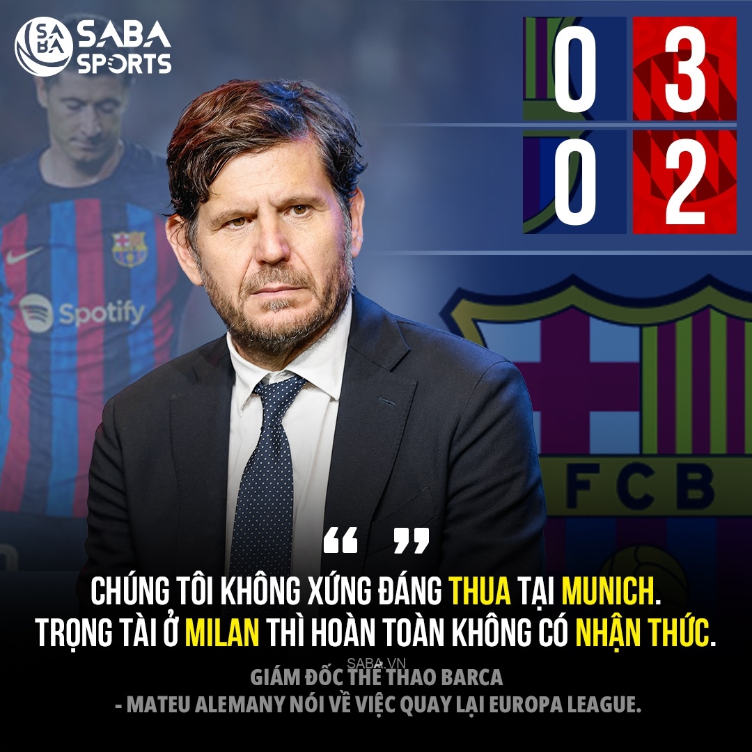 Sau trận đấu, khi được hỏi về nguyên nhân dẫn đến việc quay lại Europa League, Giám đốc thể thao Barca - Mateu Alemany nói: “Chúng tôi không xứng đang bị thua ở Munich. Trọng tài ở Milan hoàn toàn không có nhận thức.”