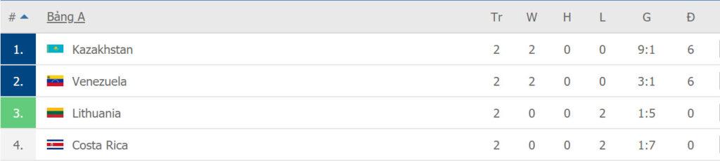 Bảng A: Chủ nhà Lithuania và Costa Rica hiện chưa giành điểm nào và sẽ gặp nhau ở lượt cuối. Do hai đội đều có hiệu số tốt hơn Việt Nam (-4 và -6) nên bất kể ai giành chiến thắng ở trận cuối cũng sẽ đạt thành tích tốt hơn chúng ta.