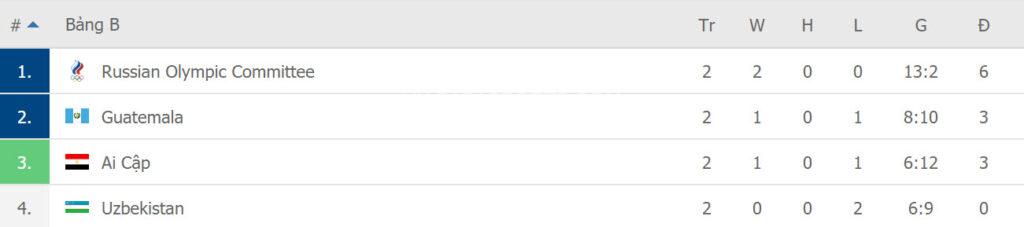 Bảng B: Ai Cập gần như chắc suất vị trí thứ 2 nếu giành ít nhất 1 điểm trước Uzbekistan ở lượt cuối. Cơ hội cho Việt Nam chỉ được củng cố nếu Nga (đã chắc suất đi tiếp) thắng thật đậm Guatemala (hiệu số -2).