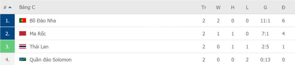 Bảng C: Thái Lan và Ma Rốc gần như đã chắc suất đi tiếp sau Bồ Đào Nha.