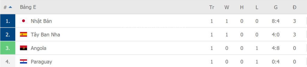 Bảng E: Dù mới chỉ đá 1 vòng nhưng Paraguay và Nhật Bản cũng có cơ hội rất lớn vào Playoff do bảng đấu xuất hiện Angola quá yếu.