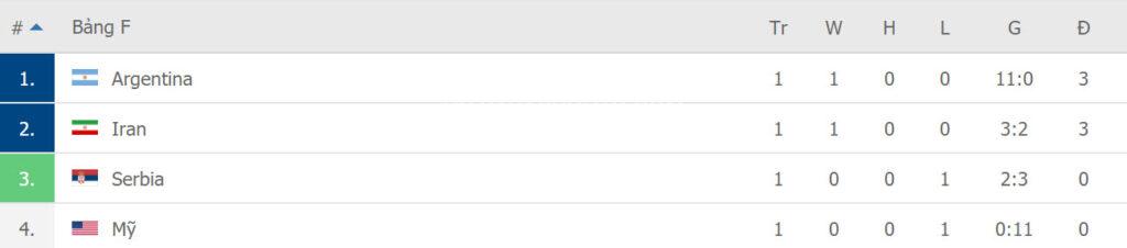 Bảng F: Do Serbia chỉ thua sát nút Iran 2-3 ở lượt đấu nên đội bóng này cũng sẽ dễ đi tiếp nếu hạn chế bàn thua trước Argentina và thắng đậm Mỹ (yếu nhất bảng) ở các vòng sau.