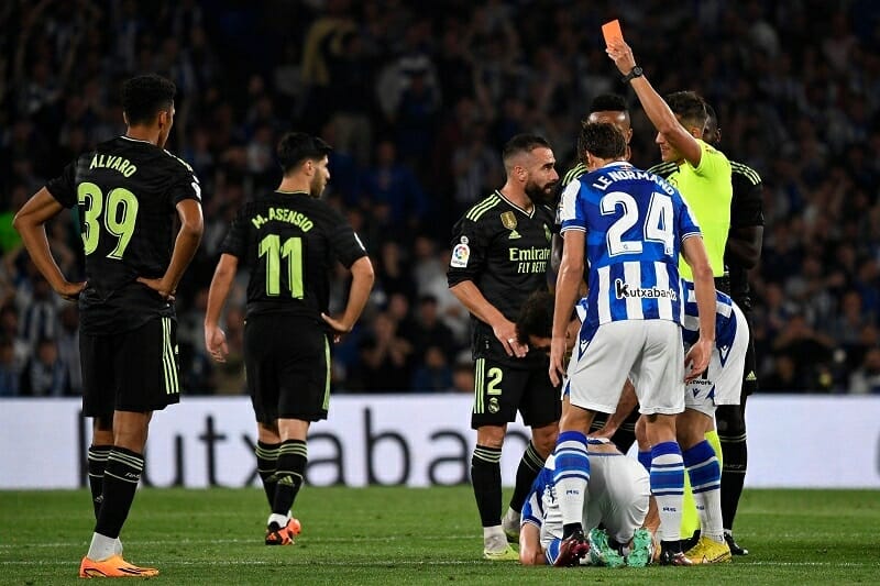 Tấm thẻ đỏ tai hại của Carvajal trong hiệp hai đã khiến Real Madrid gặp rất nhiều khó khăn trước Real Sociedad và phải chịu thất bại với tỷ số 2-0.