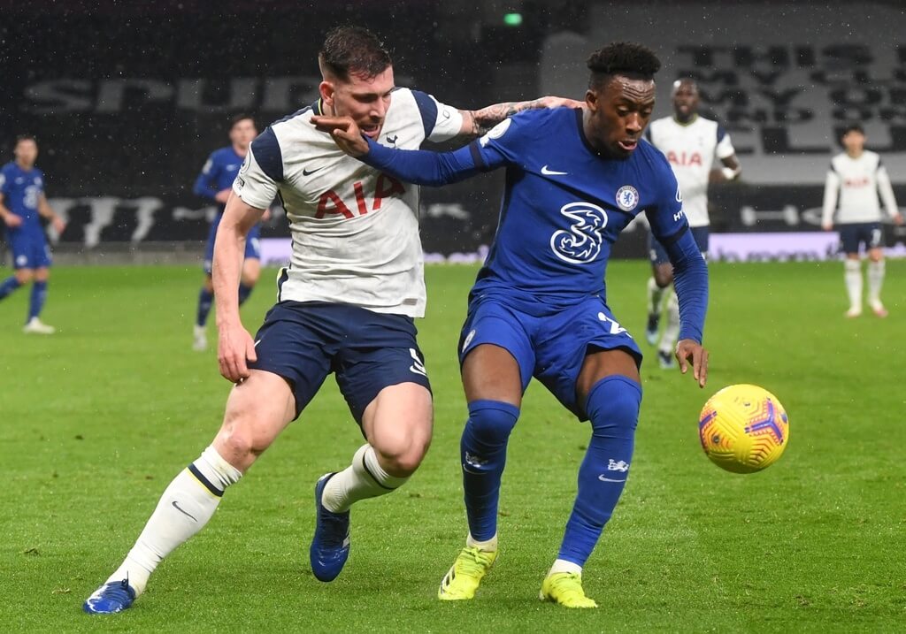 Ngay phút 24, The Blues vượt lên dẫn trước nhờ tận dụng sai lầm của Eric Dier. Trung vệ này đã có tình huống phạm lỗi vô cùng ngớ ngẩn với Werner trong vòng cấm và Jorginho dễ dàng thực hiện quả penalty thành công để giúp đội khách mở tỷ số.