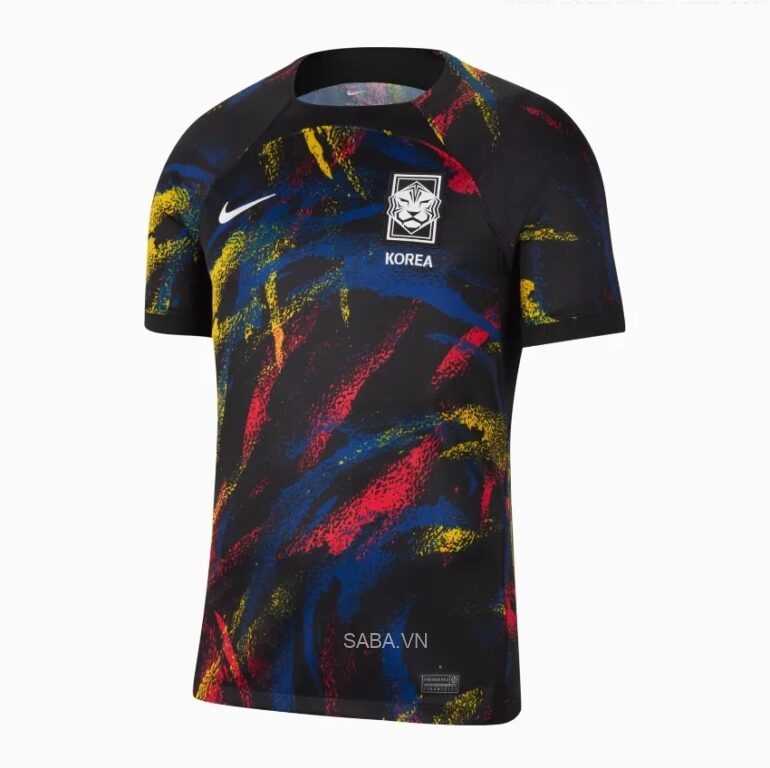 Đây là chiếc áo vô cùng phong cách với các vệt màu xanh, vàng, đỏ trên nền đen. Một thiết kế cho thấy sự sáng tạo và tươi trẻ, đúng với nền văn hóa của nước này.
