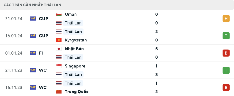 Phong độ Ả Rập Xê Út vs Thái Lan