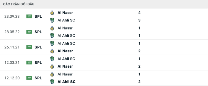 Thành tích đối đầu Al Ahli vs Al Nassr