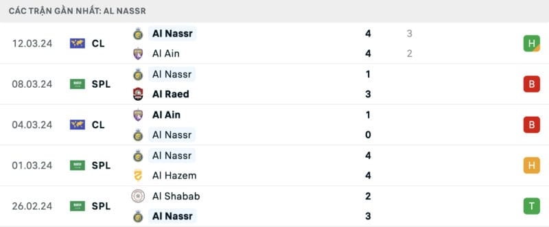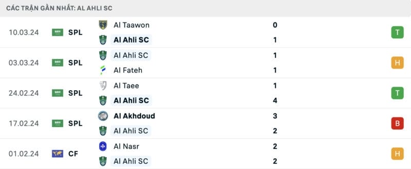 Phong độ Al Ahli vs Al Nassr