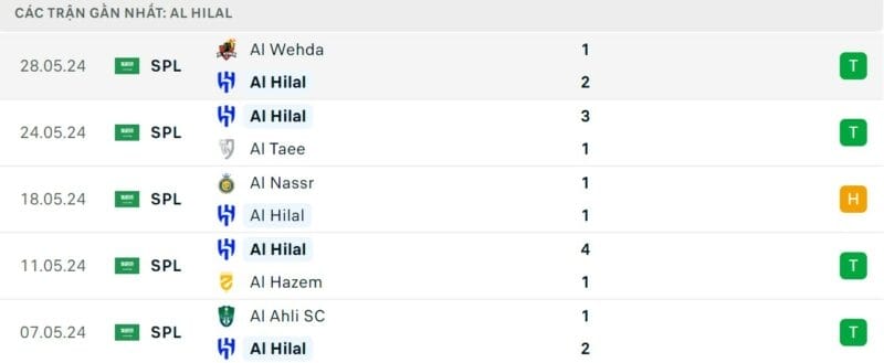Phong độ gần đây Al Hilal vs Al Nassr