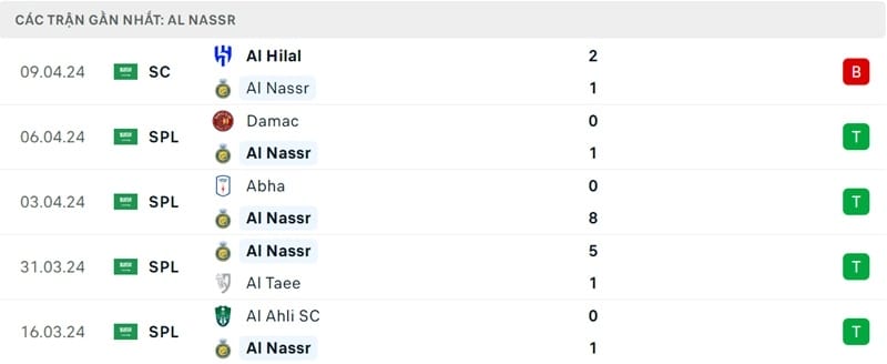 Phong độ Al Nassr vs Al Feiha