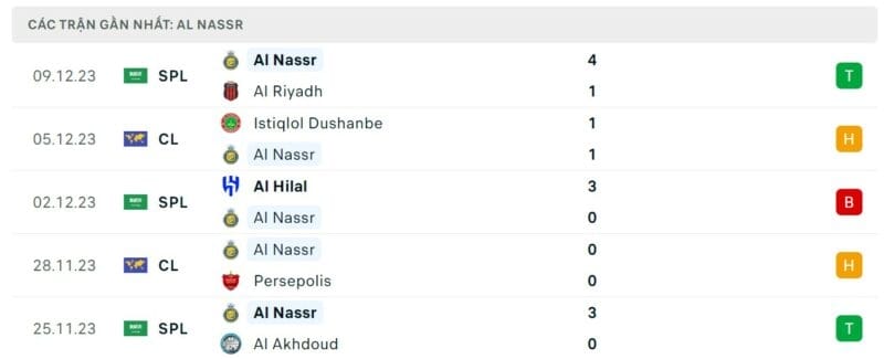 Phong độ Al Shabab vs Al Nassr gần đây