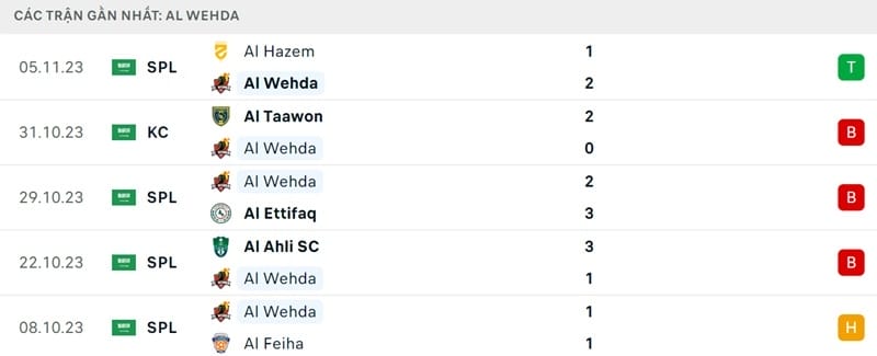 Phong độ Al Wehda vs Al Nassr: