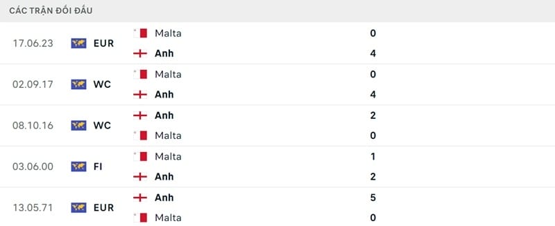 Lịch sử đối đầu nghiêng hẳn về đội chủ sân Wembley. Chuyến viếng thăm Ta' Qali của Anh vào tháng 6 đã chứng kiến Tam Sư đánh bại Malta với tỷ số 4-0. Kết quả đó kéo dài chuỗi thắng liên tiếp của Anh trước Malta lên con số 6. Đáng chú ý hơn cả, Malta chỉ ghi 1 bàn ở giai đoạn chạm trán này.