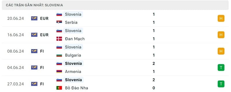 Phong độ gần đây Anh vs Slovenia