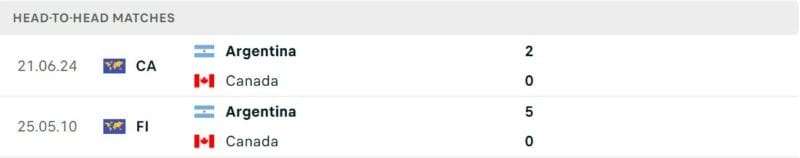 Thành tích đối đầu Argentina vs Canada