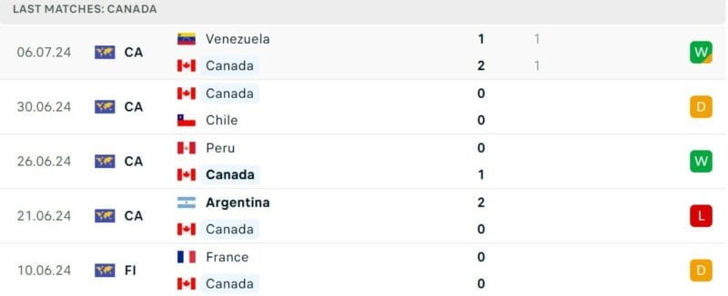 Phong độ gần đây Argentina vs Canada