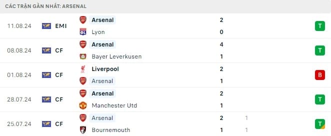 Phong độ gần đây Arsenal vs Wolves