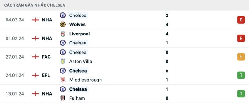 Còn với Chelsea, họ vẫn chưa thể tìm ra cách để thoát khỏi cuộc khủng hoảng của mình. Thất bại muối mặt với tỉ số 2-4 trước Wolves hồi cuối tuần đã là trận thua thứ 2 liên tiếp của The Blues. Đoàn quân của HLV Mauro Pochettino tiếp tục ngụp lặn ở nửa sau BXH, vị trí quen thuộc của họ mùa này.