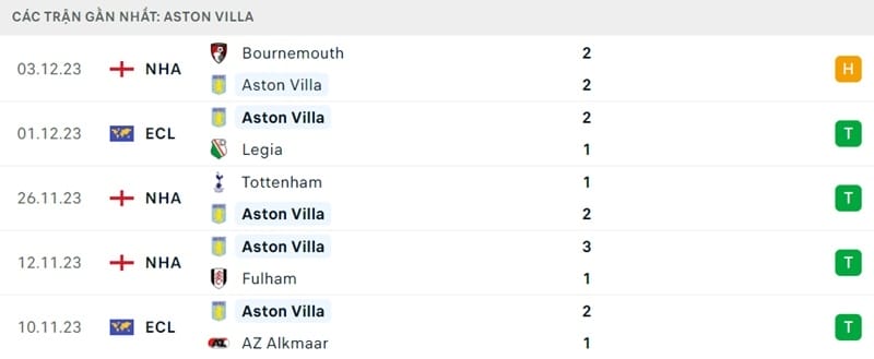 Cả Aston Villa và Manchester CIty đều nhận trận hòa ở vòng đấu cuối tuần rồi. Nếu Villa mất điểm trước Bournemouth thì nhà ĐKVĐ để cho Tottenham Hotspur cầm chân đáng tiếc. Man City chắc chắn muốn tìm lại cảm giác chiến thắng, nhưng đó không phải là nhiệm vụ dễ dàng.
