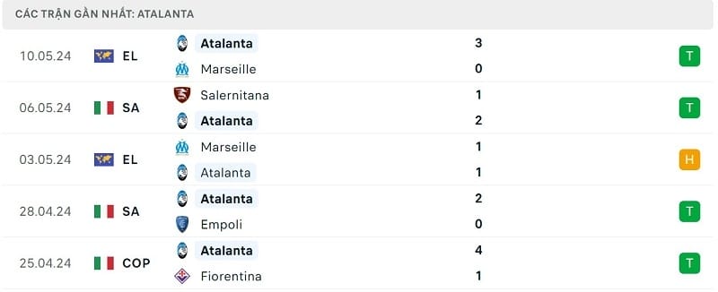 Bên cạnh đó, chiến thắng trên còn nối dài chuỗi phong độ ấn tượng thời gian của Atalanta. Tính trong 5 trận gần nhất trên mọi đấu trường, đội chủ sân Atleti Azzurri d'Italia không phải nhận bất cứ thất bại. Cụ thể, Atalanta giành 4 chiến thắng và có 1 trận hòa.