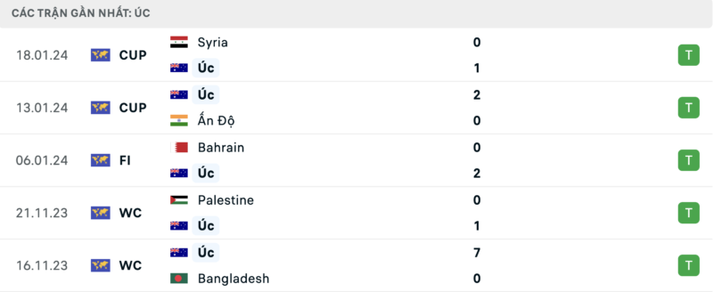 Australia là đội đầu tiên ở bảng B giành vé góp mặt tại vòng knock-out của Asian Cup 2023. Đại diện xứ chuột túi dễ dàng đánh bại 2 đối thủ yếu hơn là Ấn Độ và Syria ở 2 lượt trận đầu tiên. Trong đó họ ghi được 3 bàn thắng và chưa để thủng lưới lần nào.