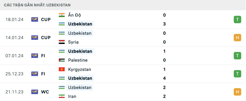 Uzbekistan cũng đang có cơ hội lớn để đi tiếp sau khi đã giành được 4 điểm sau 2 lượt trận đầu tiên. Họ hòa Syria 0-0 và hủy diệt Ấn Độ với tỉ số 3-0. Giống như Australia, Uzbekistan chưa để thua bàn nào tại giải đấu này.
