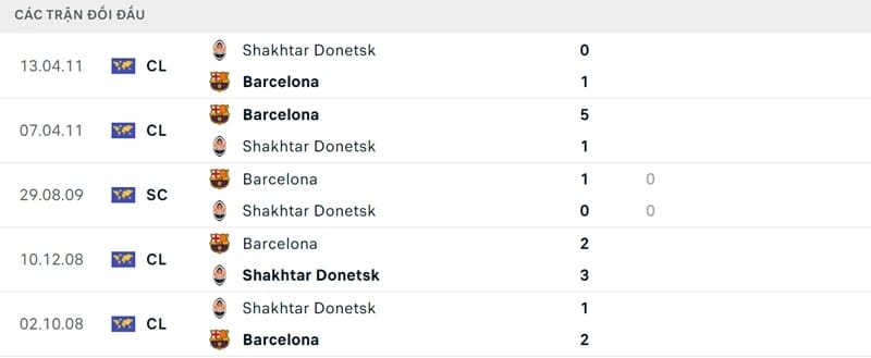 Thành tích đối đầu Barca vs Shakhtar Donetsk: