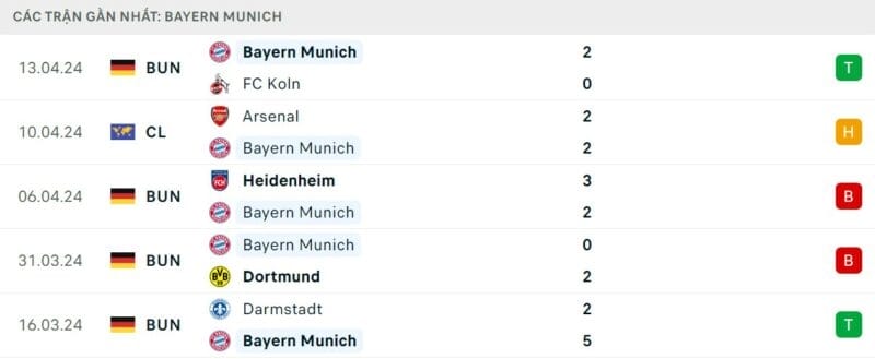 Thành tích đối đầu Bayern Munich vs Arsenal