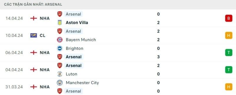 Với Arsenal, họ đã chính thức đánh mất ngôi đầu Ngoại hạng Anh sau thất bại bạc nhược 0-2 trước Aston Villa ngay trên sân nhà. Đây là trận thua đầu tiên của Pháo Thủ trong năm 2024. Bước chạy đà không tốt có thể sẽ ảnh hưởng tới tinh thần của thầy trò HLV Mikel Arteta trước khi bước vào trận tứ kết lượt về của Champions League.