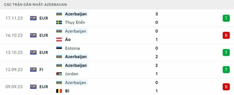 Thành tích đối đầu Bỉ vs Azerbaijan