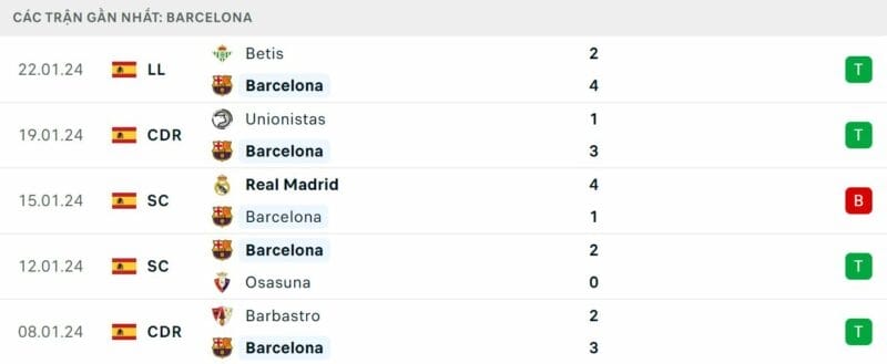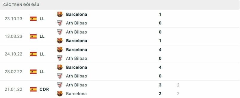 Thành tích đối đầu cũng ủng hộ đoàn quân được dẫn dắt bởi Xavi Hernandez. Họ đã thắng Bilbao 4 lần và chỉ thua 1 trong 5 cuộc đụng độ gần nhất giữa đôi bên. Trong các trận đấu đó, Barca ghi được 12 bàn và chỉ để thủng lưới 2 lần.