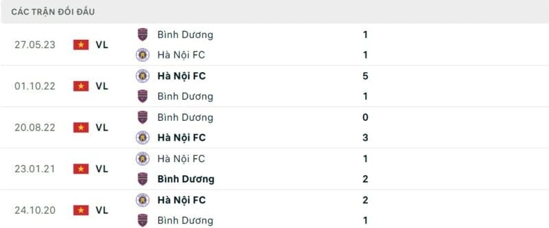 Thành tích đối đầu Bình Dương vs Hà Nội: