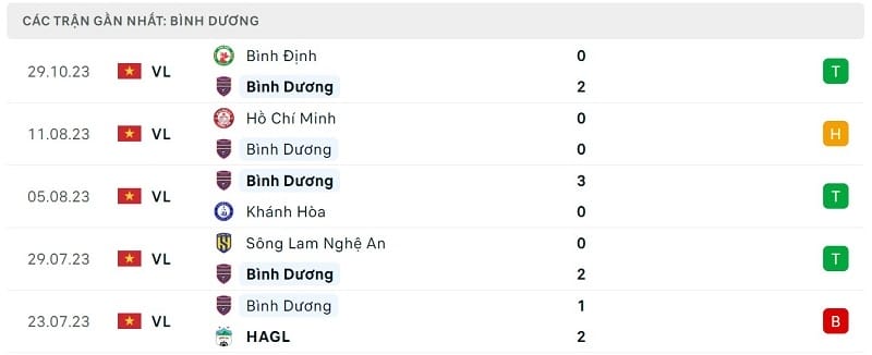Cụ thể, ở trận đấu gần nhất, đoàn quân của HLV Lê Huỳnh Đức đã giành chiến thắng với tỷ số 2-0 trước Bình Định nhờ các pha lập công của lần lượt Bùi Duy Thường và Hồ Sỹ Giáp. Kết quả này giúp Bình Dương xếp thứ 5 trên bảng xếp hạng với tổng cộng 3 điểm (tính đến trước vòng 3). Tuy nhiên vị trí này không phản ánh được đúng thực lực thật sự của đội chủ sân Gò Đậu bởi họ mới chỉ thi đấu duy nhất 1 trận.