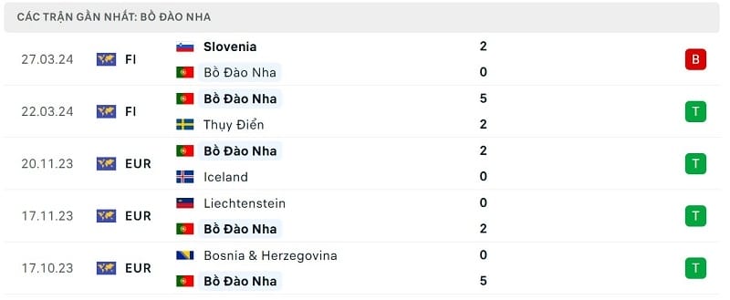 Phong độ Bồ Đào Nha vs Phần Lan