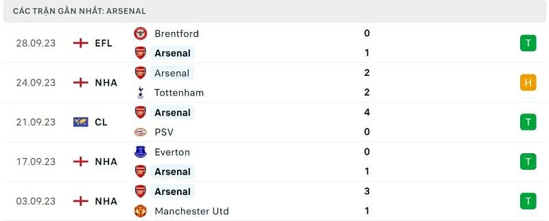 Trái ngược hoàn toàn với đoàn quân của HLV Andoni Iraola, Arsenal đang có phong độ cực kỳ tốt. Tính từ đầu mùa giải đến giờ trên mọi đấu trường, Pháo thủ vẫn chưa phải nhận bất cứ thất bại nào. Ở trận đấu gần nhất, dù chỉ sử dụng đội hình dự bị, Arsenal vẫn có được chiến thắng 1-0 trước Brentford tại League Cup. Còn tại Ngoại hạng Anh, thầy trò HLV Mikel Arteta hiện có tổng cộng 14 điểm, đứng thứ 5 trên bảng xếp hạng.