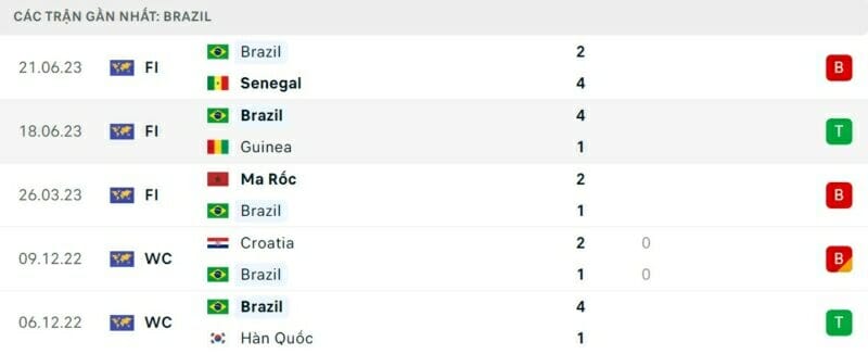 Phong độ Brazil vs Bolivia